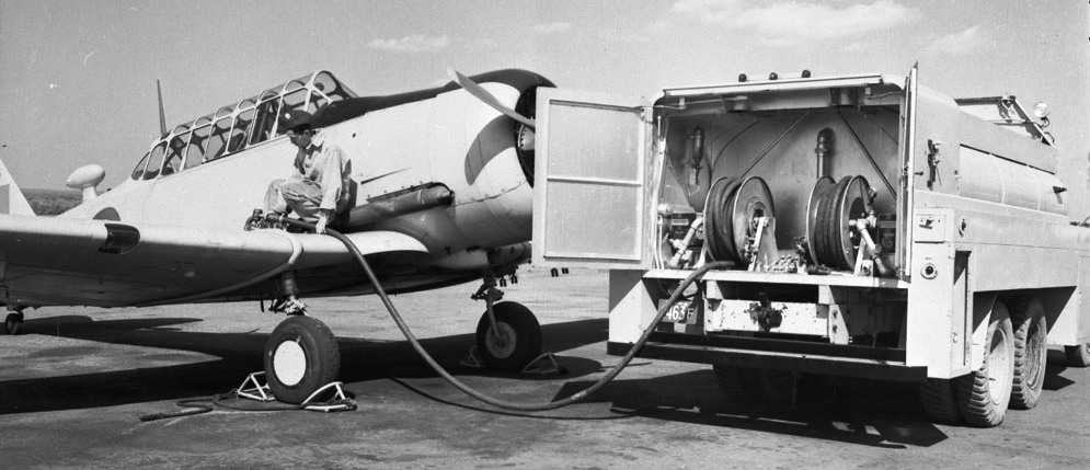 RCAF refueling tender servicing a North American Harvard, 6 Sep 1949.