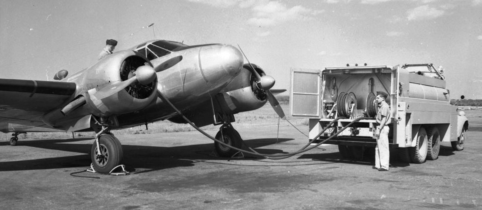 RCAF refuelling tender servicing a Beechcraft Expeditor, 6 Sep 1949.