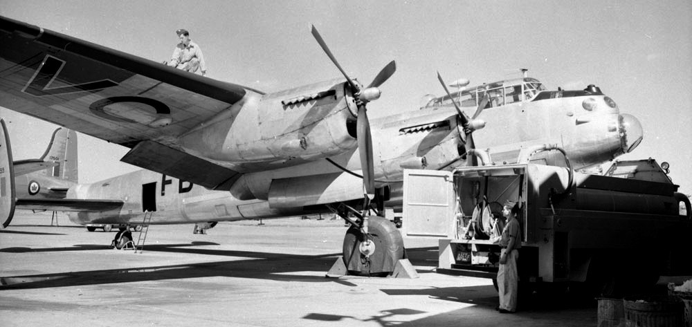 RCAF refuelling tender servicing an Avro Lancaster, 6 Sep 1949.