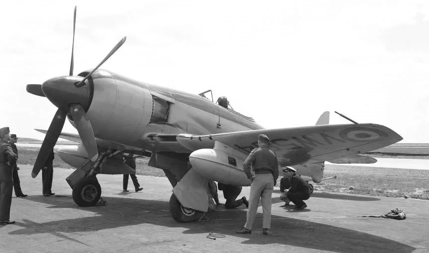 Hawker Sea Fury FB Mk. II (Serial No. VW584), coded BC-C, of the 19th CAG on the tarmac at Shearwater, Nova Scotia.