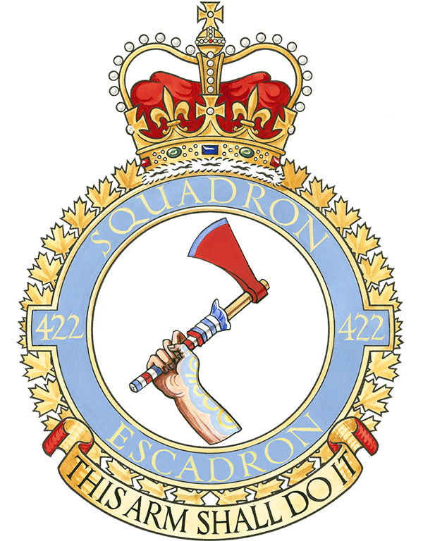 01 Jan 1953. No. 422 (Fighter) Squadron was re-formed at Uplands, Ottawa, Ontario, and was equipped with Canadair CL-13 Sabre Mk. 2 and later the Mk. 4 Mk. 5 and Mk. 6. The squadron joined No. 4 (Fighter) Wing at Baden-Soellingen, Germany in Aug 1953. The squadron was one of eight Sabre units in No. 1 Air Division Europe that was re-equipped with the Canadair CF-104 Starfighter in a nuclear role. It was deactivated on 15 Apr 1963 and reactivated on 15 Jul 1963 as No. 422 (Strike Attack) Squadron. On 1 Feb 1968 the squadron was integrated into the Canadian Armed Forces (CAF). In Jul 1970 it was deactivated. In Jan 1971 the squadron was reactivated as No. 422 Tactical Helicopter Squadron and served until it was disbanded in Aug 1980.