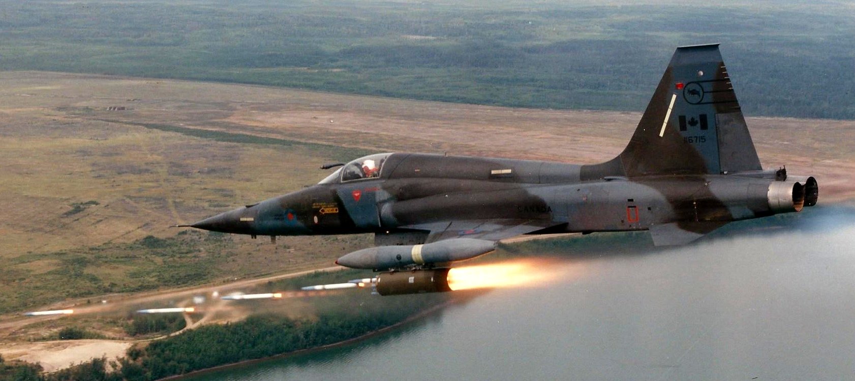 Canadair CF116 (Serial No.116715), No. 419 TFT Squadron, CFB Cold Lake, Alberta, firing rockets.