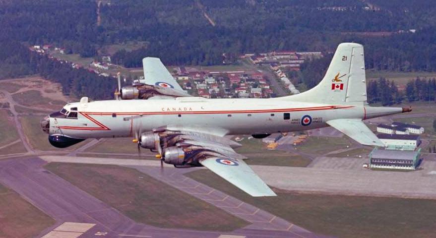 Canadair CP-107 Argus Mk. 1, RCAF (Serial No. 20721), No. 407 (Maritime Patrol) Squadron, over CFB Comox, British Columbia.
