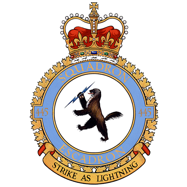 01 Apr 1953. No. 445 All-Weather (Fighter) Squadron was formed at North Bay, Ontario. The squadron was the first unit to fly the Avro Canada CF-100 Canuck Mk. 3B and later the Mk. 4B on North American air defence. In Nov 1956 it joined No. 1 Air Division Europe at No. 1 (Fighter) Wing, Marville, France. The squadron was disbanded on 31 Dec 1962.