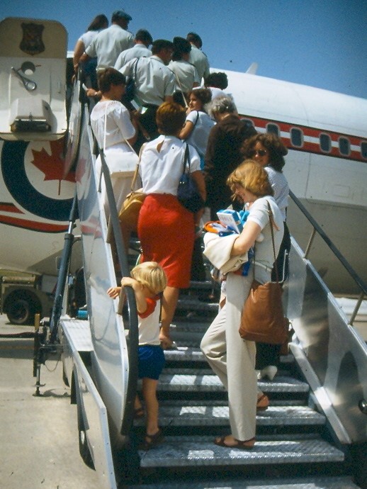 My wife Faye and son Jonathan boarding the Boeing707 at CFB Lahr, Germany, June 1983.