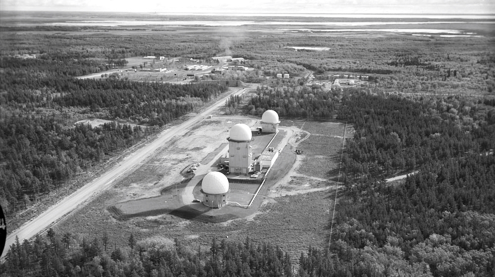 Aerial view Pinetree Radar site, CFS Gypsumville, Manitoba. 25 Sept. 1963.