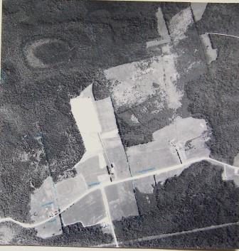 Aerial photo of the farm, long before the new Trans Canada Highway was built through the middle of it.