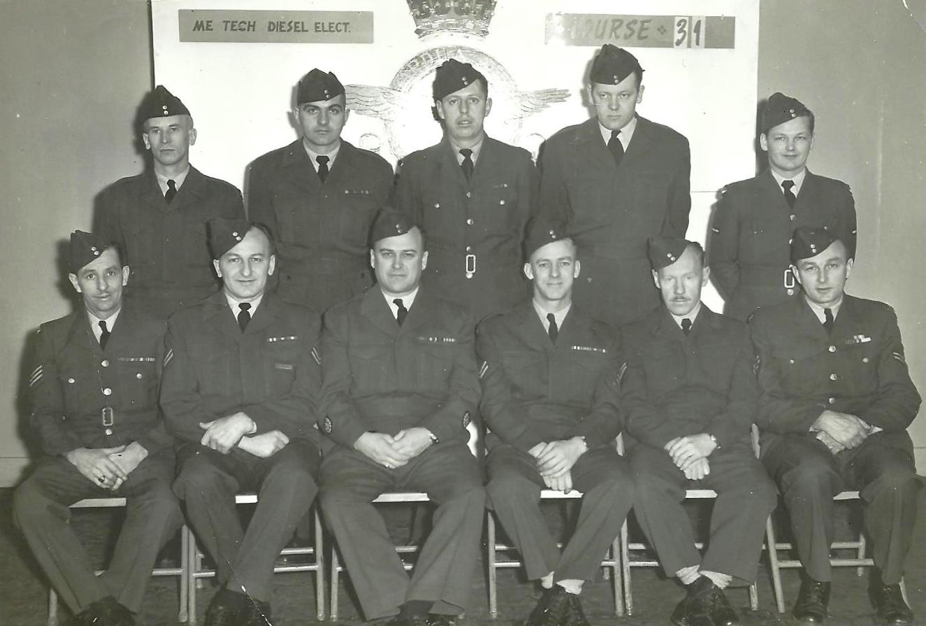 Dad, top left, on an ME Tech Diesel Electrical Course 31, sometime before 1959.