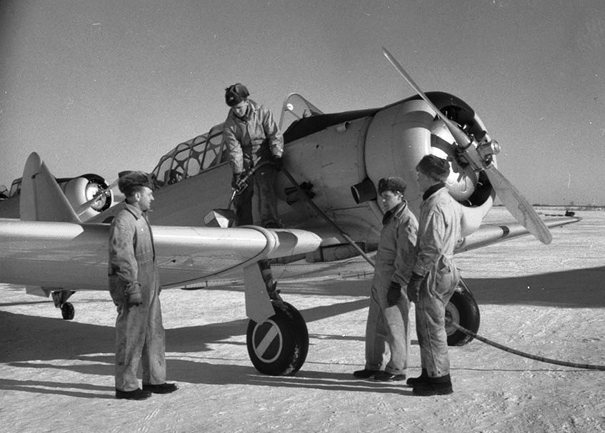 North American Harvard Mk. II being refueled. (RCAF Photo courtesy of the Canadian Aviation Preservation Association)