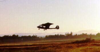 Aage with the Challenger II ultra-light aircraft he built and flew himself.