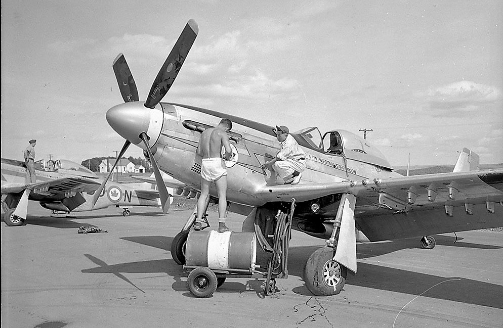 North American Mustang Mk. IV, RCAF Station Uplands, Ontario, 5 Aug 1952. Dad spoke of a number of incidents with Mustang landings at RCAF Station Trenton, Ontario.