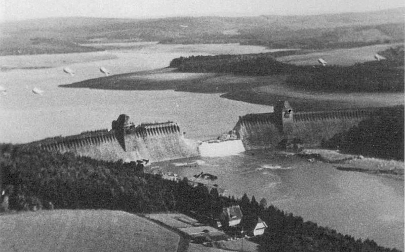 Operation Chastise, commonly known as the Dambusters Raid, was an attack on German dams carried out on the night of 16/17 May 1943 by 617 Squadron RAF Bomber Command, later called the Dam Busters ,using special “bouncing bombs” developed by Barnes Wallis. The Möhne and Edersee dams were breached, causing catastrophic flooding of the Ruhr valley and of villages in the Eder valley; the Sorpe Dam sustained only minor damage. Two hydroelectric power stations were destroyed and several more damaged. Factories and mines were also damaged and destroyed. An estimated 1,600 civilians – about 600 Germans and 1,000 enslaved labourers, mainly Soviet – were killed by the flooding. Despite rapid repairs by the Germans, production did not return to normal until September. The RAF lost 53 aircrew killed and 3 captured, with 8 aircraft destroyed. (Hastings, Max. Operation Chastise: The RAF’s Most Brilliant Attack of World War II. HarperCollins, New York, 2020)