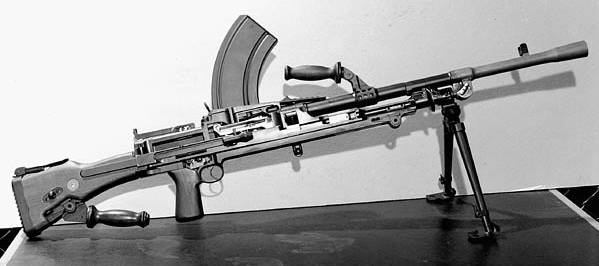 China, 7.62-mm Norinco 87S (RPK) LMG, with a bipod and 40-round box magazine.