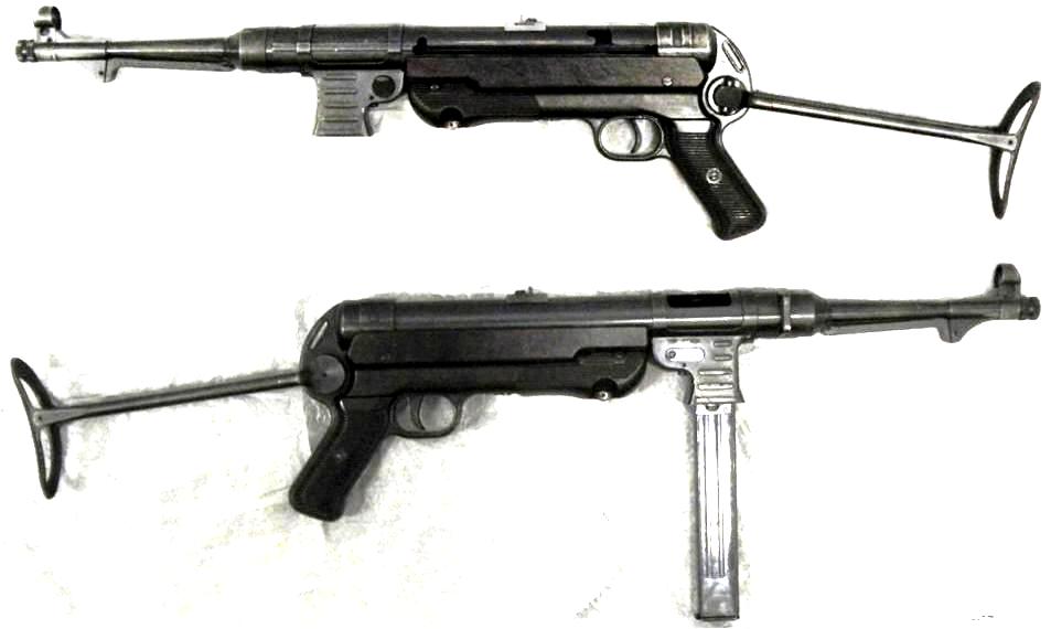 Germany, 9-mm MP 40 submachine-gun.  The German MP40, or “Maschinenpistole .40” evolved out of the prone-to-misfire MP38. Once a small but notable innovation was made to the submachine gun’s hammer, the MP40 came of age. Karabiner 98K rifles were issued to German soldiers until the Battle of Stalingrad, where they quickly became outgunned by Soviet troops in close-quarter urban combat. In response, the German army issued MP 40s to entire platoons. Much like the Luger, it became a prized weapon to be captured by A troops.