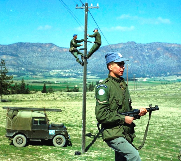 LdSH patrol, UN, Cyprus, 9-mm Sterling SMG, ca 1960s.