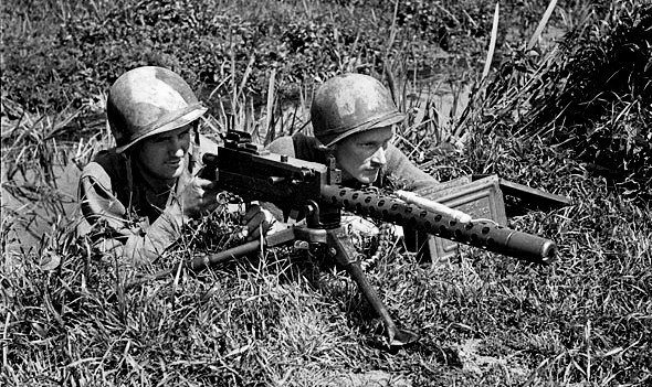 First Special Service Force (FSSF) soldiers with Browning 30. cal GPMG, Anzio beachhead, Italy, 27 Apr 1944.