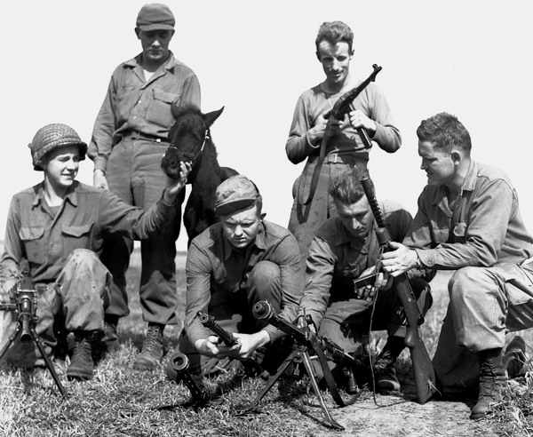 Canadian and First Special Service Force, with captured German and Italian automatic weapons in the Anzio beachhead, Italy, 20 April 1944.