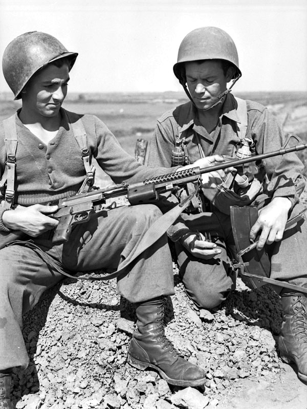 First Special Service Force (FSSF) soldiers with M41 Johnson LMG, Anzio beachhead, Italy, 27 Apr 1944.