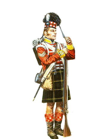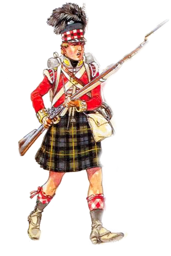 74th (Highlanders) Regiment of Foot was formed in December 1777. The “Argyle Highlanders” of 1777-1784 was raised by Colonel John Campbell, of Barbrick, a veteran of the old 78th, or Fraser Highlanders, of 1756-1763. The regiment served in Nova Scotia during the American War of Independence and was distinguished by its defence of Penobscot in July 1779 against an American squadron. In 1779 it was dispatched to New York. The flank companies were later employed in Carolina. After the war, many members of the regiment settled in St. Andrews-by-the sea in New Brunswick. The remaining soldiers of the regiment returned to Scotland, and it was disbanded on 24 May 1784.