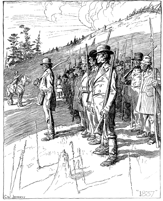 Rebels drilling in North York in autumn, 1837. LAC, Acc. No. 1961-29(34). Charles W. Jefferys.