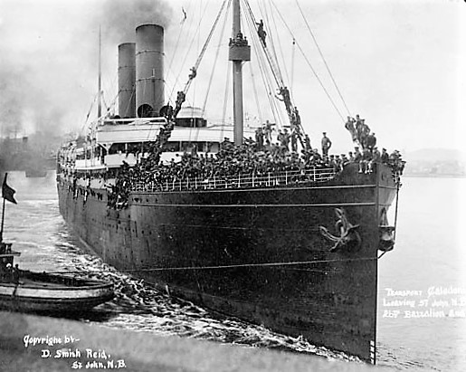 Transport “Caledonia” leaving Saint John, New Brunswick, with 26th Battalion and Ammunition Column, CEF.