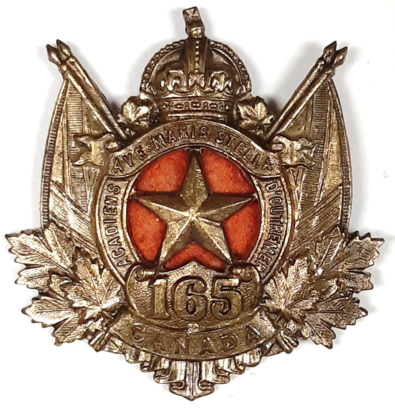 165th Battalion (Acadiens). Authorized on 22 December 1915, disbanded on 15 April 1918.