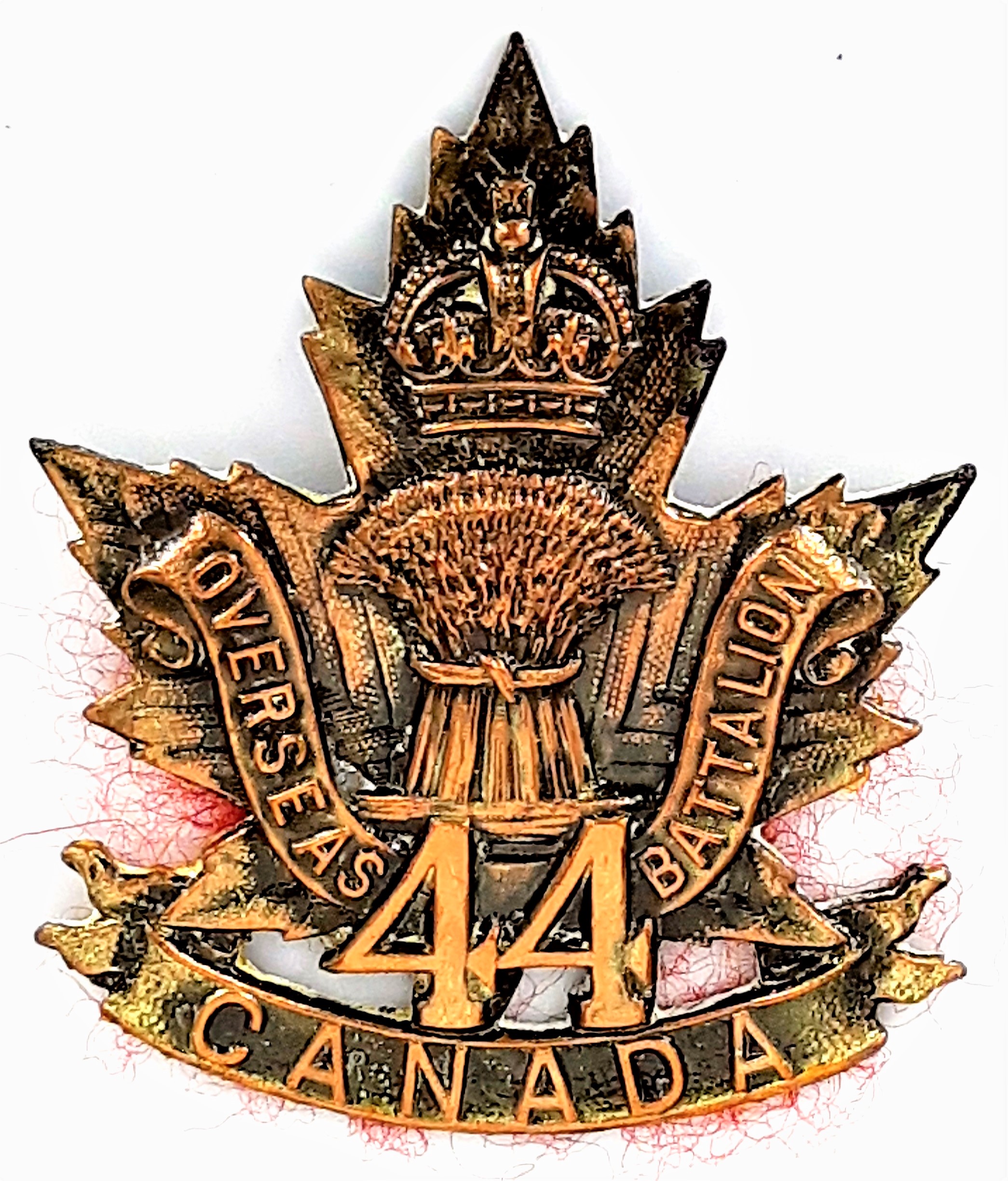 The 44th Battalion (Manitoba), CEF, was an infantry battalion of the CEF during the First World War.  The 44th Battalion was authorized on 7 November 1914 and The 44th Canadian Infantry Battalion was authorized to be recruited and mobilized at Winnipeg on 1 February 1915 under General Order 86 of 1 July 1915. Prior to sailing for England on 23 October 1915 the 44th Battalion had provided two reinforcing drafts to the CEF the first of five officers and 250 other ranks sailing on 1 June 1915, a second of five officers and 249 other ranks on 9 September 1915. The 44th Overseas Battalion embarked for England with 36 officers and 1076 other ranks under command of Lieutenant-Colonel E.R. Wayland (95th Lake Superior Regiment) where it was assigned to the 10th Infantry Brigade,4th Canadian Division. The 44th Battalion embarked for France in August 1916 where it served for the duration of the First World War. In August 1918 however the 44th Canadian Infantry Battalion was redesignated as the 44th (New Brunswick) Battalion henceforth being reinforced by the 13th Reserve Battalion. The 44th New Brunswick Battalion was disbanded under General Order 149, 15 September 1920.