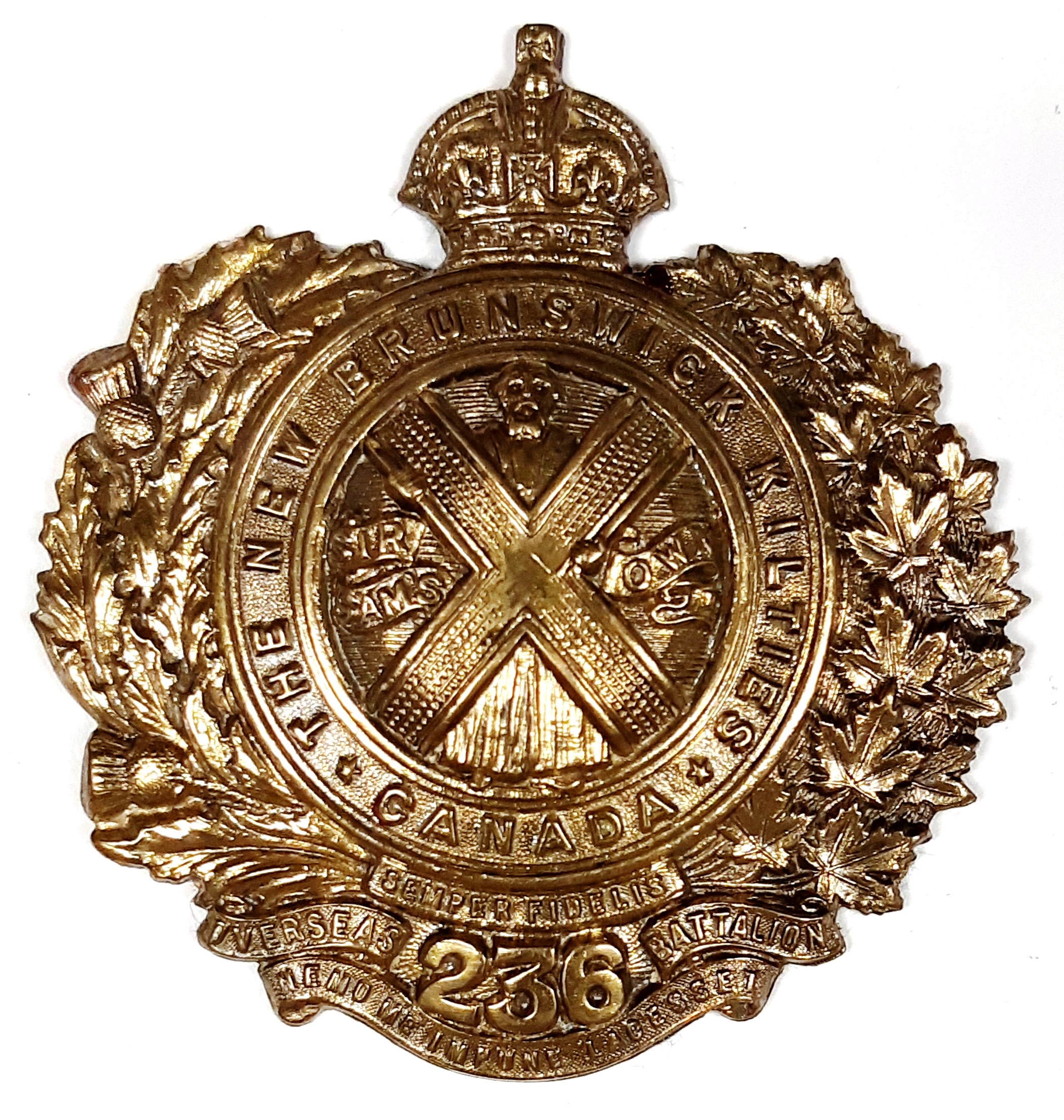 236th Battalion (New Brunswick Kilties). Authorized on 15 July 1916, disbanded on 30 August 1920.