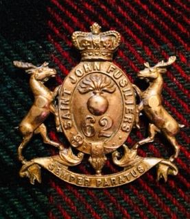 The Saint John Fusiliers originated in 1872 as the 62nd St. John Battalion of Infantry. It was designated the 62nd Battalion Saint John Fusiliers in 1882 and the 62nd Regiment St. John Fusiliers in 1900. In 1920 the unit became the St. John Fusiliers and in 1925 the Saint John Fusiliers. In 1946, after a series of amalgamations and name changes the Saint John Fusiliers amalgamated with the New Brunswick Rangers.