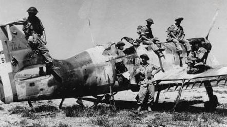 Soldiers of the Carleton & York Regiment examine the remains of a French-made Italian Dewoitine D.520 fighter plane at Reggio airfield, 3 September, 1943. / Des soldats du Carleton & York Regiment examinent les restes d’un avion de chasse italien Dewoitine D.520 de fabrication française, à l’aérodrome de Reggio, le 3 septembre 1943.