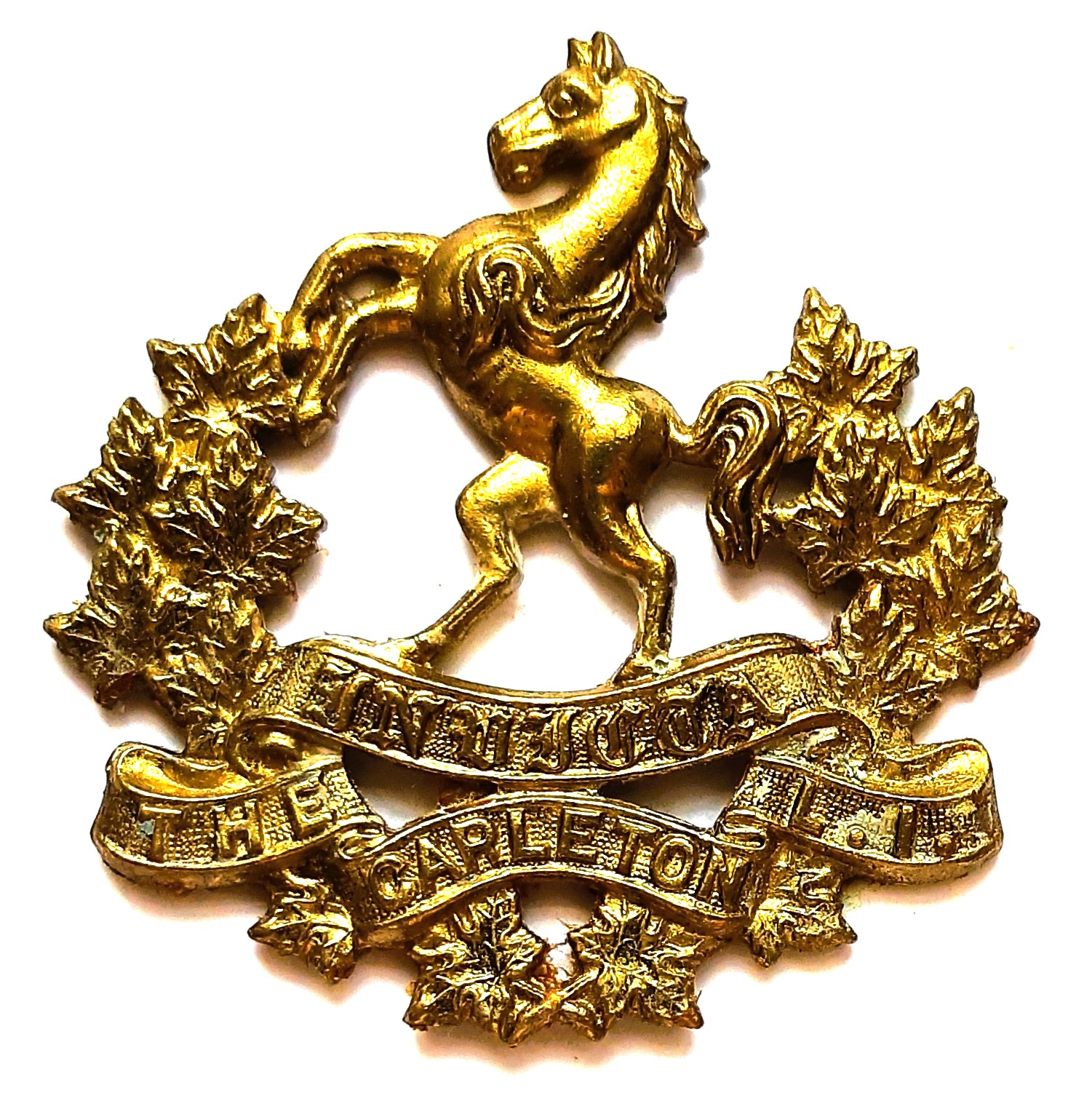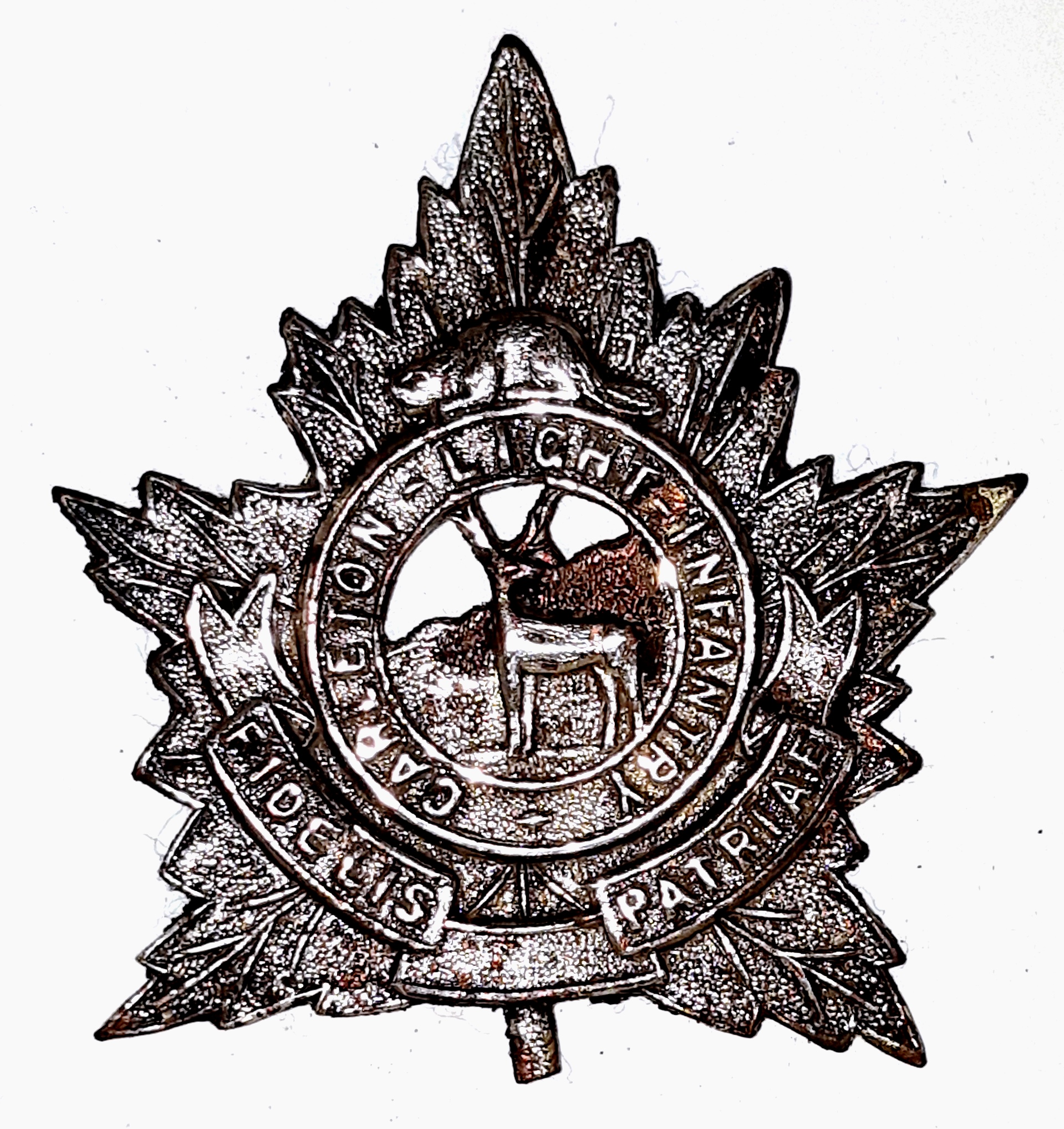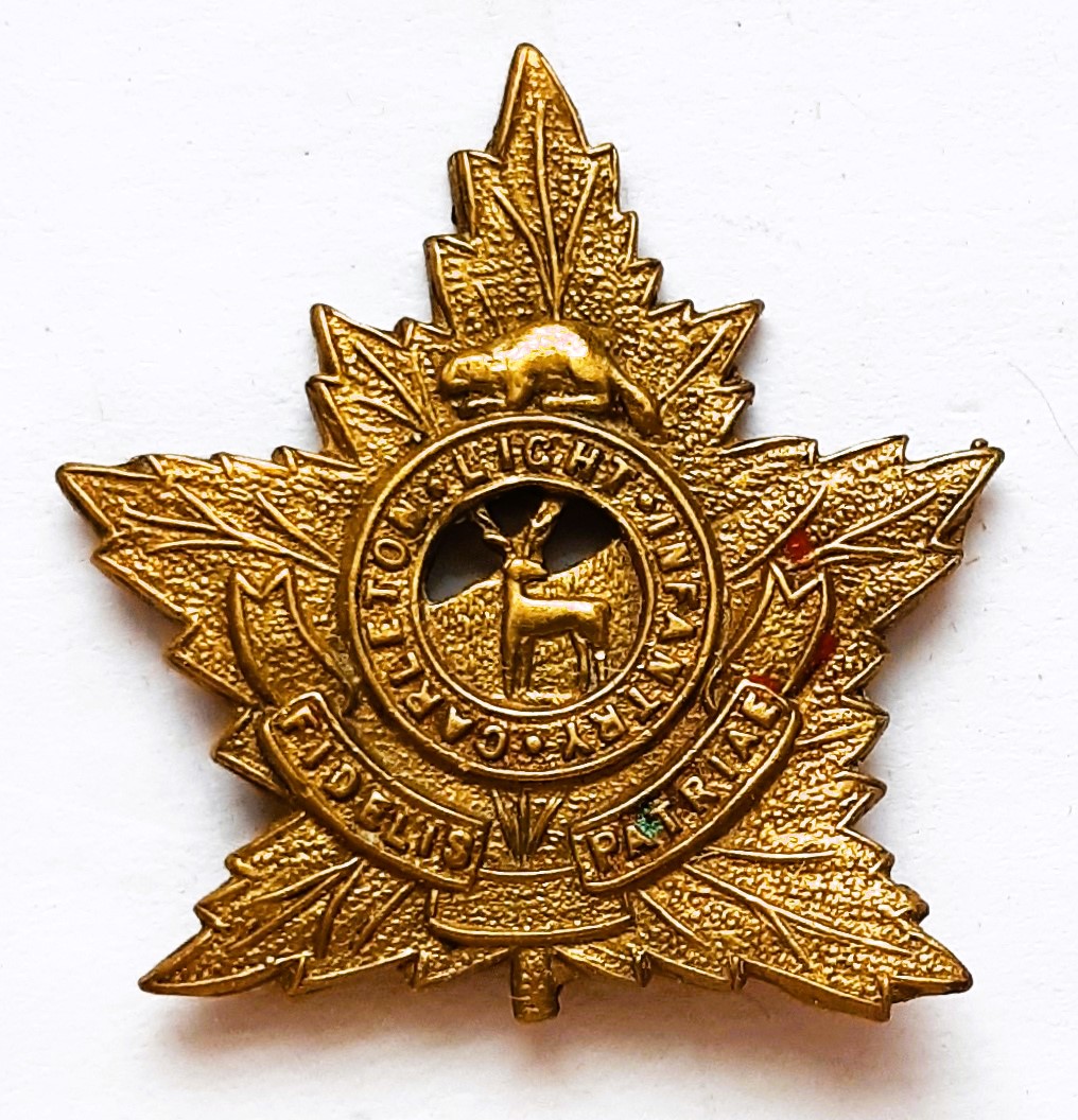 No change was made to the badge until the re-organization of the Militia in 1920. The sweeping changes saw a number of amalgamations as well as changes in designations to old units. In the case of the 67th ‘Carleton Light Infantry’ they, along with all of the other numbered Infantry regiments, lost their number and were now to be known as the ‘Carleton Light Infantry’.