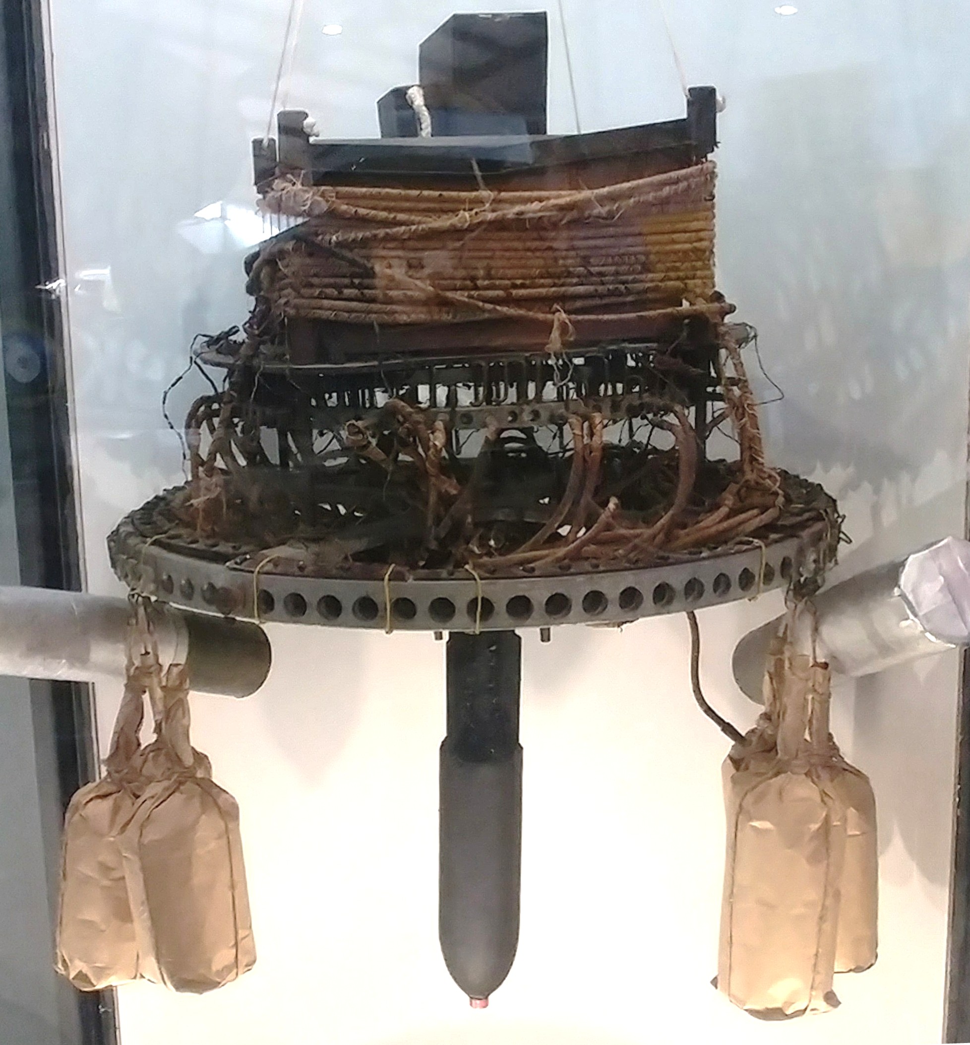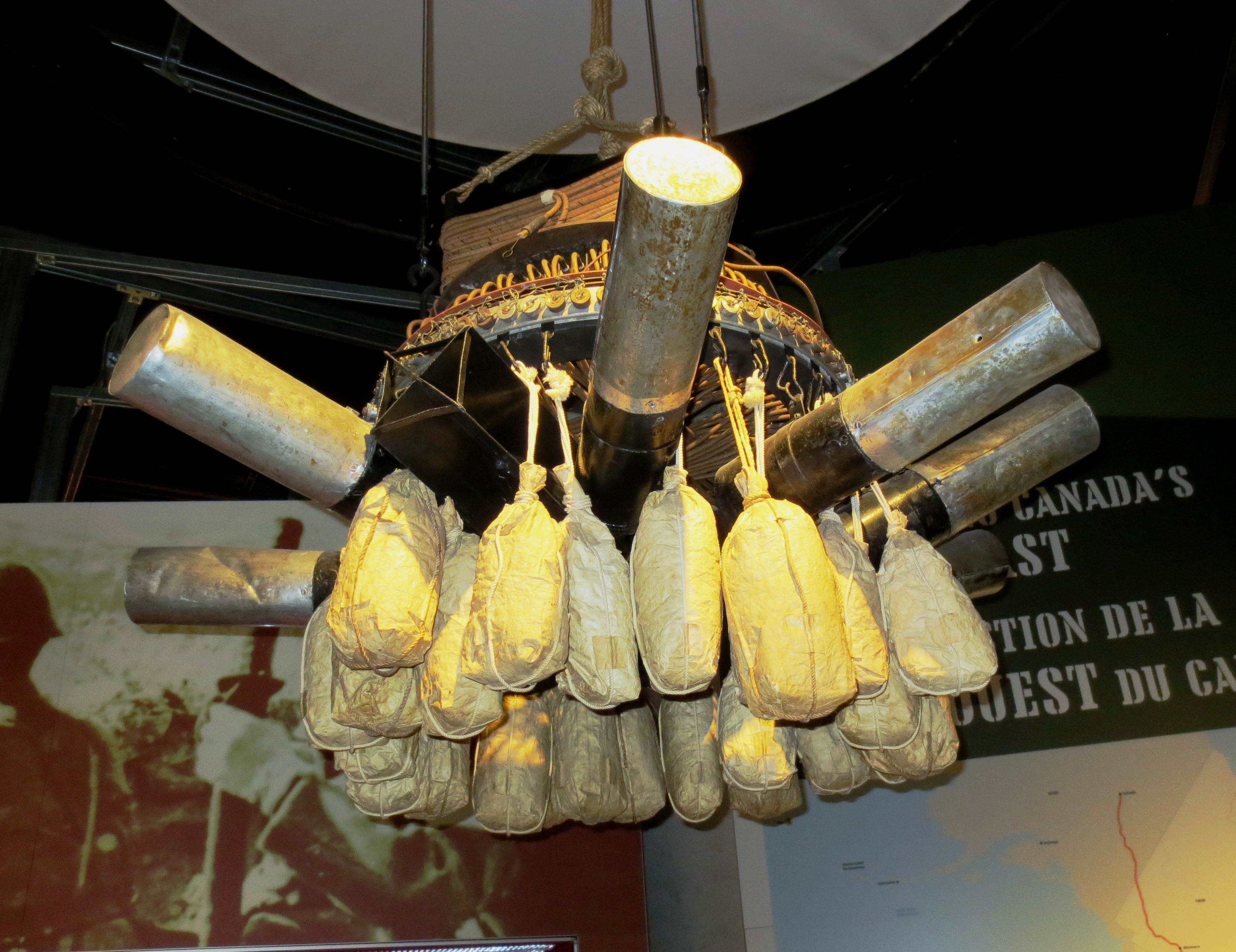 Japanese Balloon Bomb (f?sen bakudan) ordnance display in the Canadian War Museum, Ottawa, Ontario.
