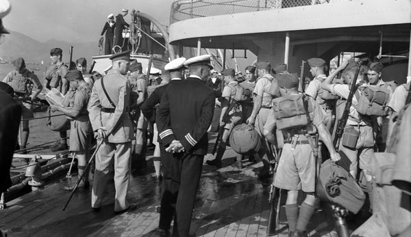 Royal Rifles of Canada, disembarking from HMCS Prince George, Hong Kong, 16 Nov 1941.