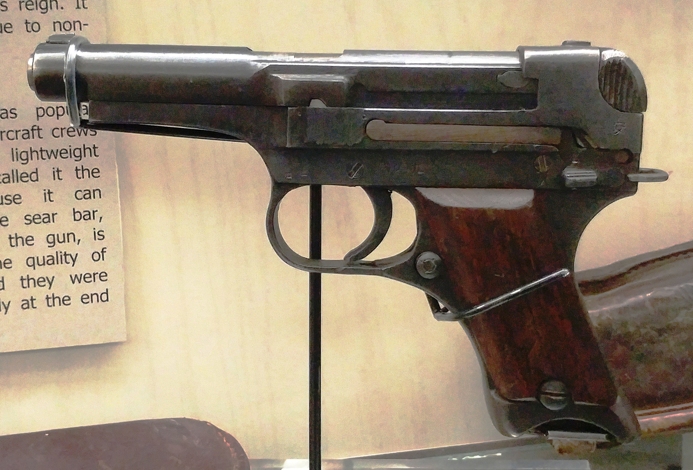 Similar to this 8-mm Nambu Type 94 semi-automatic pistol wth small trigger guard. Cole Land Transportation Museum, Bangor, Maine.
