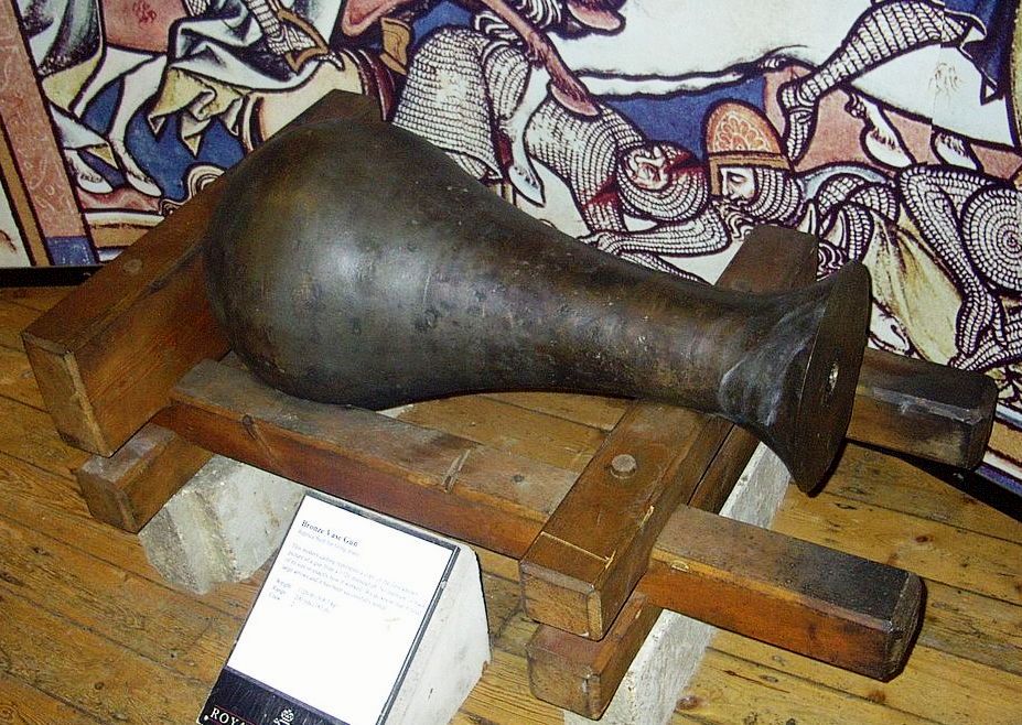 With the outbreak of the Hundred Years’ War (1337-1453) gun development expanded exponentially. Small guns firing quarrels or lead pellets were mounted on ships and used to engage French enemies at the Battle of Sluys in 1340 and in the French defence of Tournai in August of 1340. Similar weapons were used by Edward III at the Battle of Crécy between 1345 and 1346. By the time of the collapse of the Treaty of Bretigny and the resumption of the war in 1369 guns had evolved considerably.