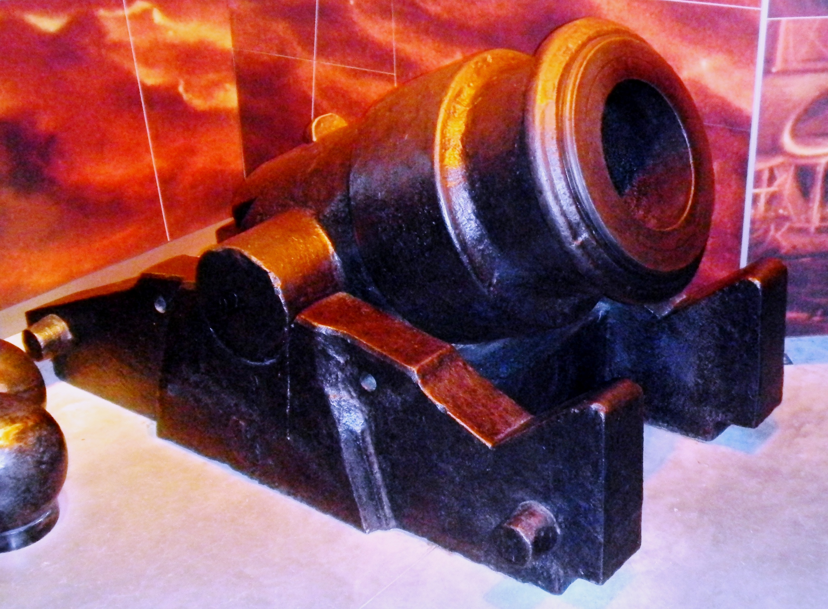 The Canonniers-Bombardiers de la Marine used various types of artillery pieces in service in the Marine Royale and in the French coastal fortifications. The great majority of the artillery pieces used in the colonies were made of iron and painted black since they were initially destined to serve on board warships. They were mounted on wooden carriages painted red.