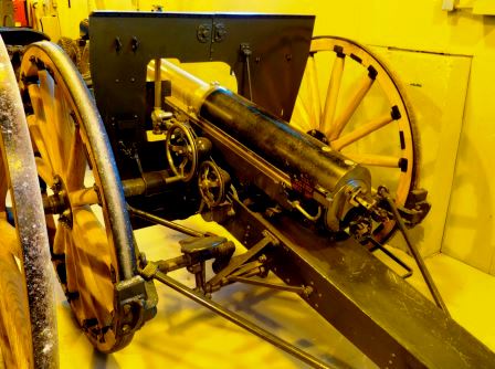 The French Canon de 80-mm de montagne, mle 1878, was a small light gun used by mountain troops and in French colonies and throughout Africa by the Colonial Artillery, and also in Morocco and Europe by the mountain batteries of the French Alpine troops. It made use of the first effective obdurator system for breech-loading artillery.[22] The example in the CWM was donated to Canada by France during the First World War.