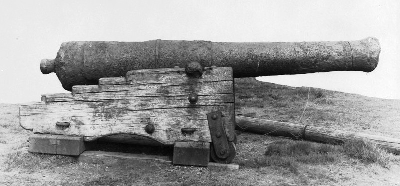 Large 12-pounder smoothbore muzzleloading cannon at Louisbourg, photo taken in the early 1900s.