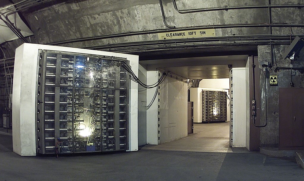 The 25-ton North blast door is the main entrance to another blast door (background) beyond which the side tunnel branches into access tunnels to the main chambers.