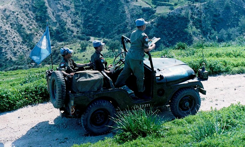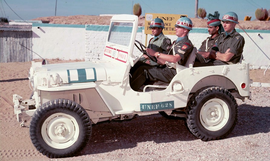 Canadian Provost Corps mounted in a Willys Jeep on UN duty in Egypt. (Library and Archives Canada Photo, MIKAN No. 4234422)
