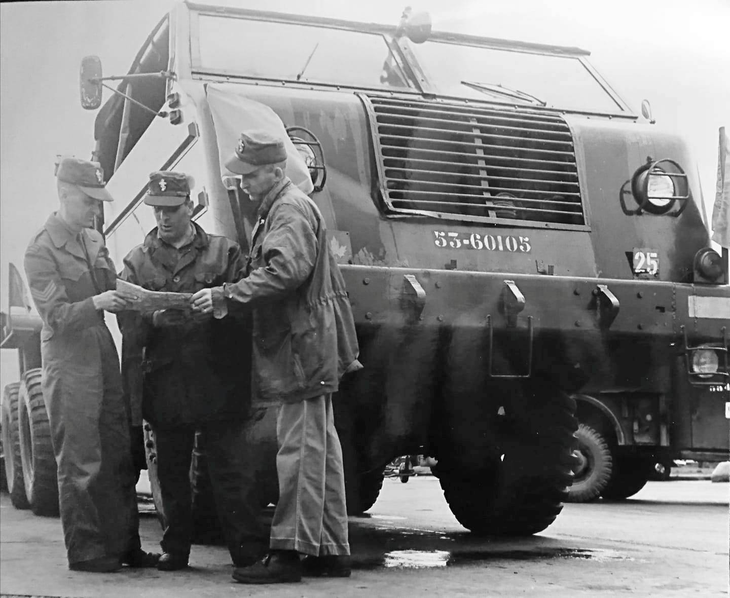 M-26A1 Mighty Mouse Tank Recovery Vehicle in Germany. During the Second World War US Army determined that it had a gap in its ability to recover and haul the increasingly heavy Tanks being brought into service. They contracted Pacific Car and Foundry Co. of Seattle, Washington, to produce a heavy truck more capable than the M20 Diamond T that was in service until then. In the end the US Army procured 48 M26/M26A1’s and Canada procured 3 M26A1’s to recover and haul our 54-ton Centurion Tanks. The US called them “Dragon Wagons”, but in Canada they were referred to as the “Mighty Mouse” due to their ability to recover and haul tanks much larger and heavier than the truck was. RCEME crews were able to attach a heavy haul trailer, similar to what is now in use with the “Tru-Hitch” recovery trailer, but with two 30-ton winches, capable of a combined 60-ton one to one extraction. Two of these Might Mouse M26A1 trucks were employed in Western Command in Calgary in the 1950s, with the third one used at the RCEME School for training. These were primarily used by the 53rd Light Aid Detachment, which was attached to Lord Strathcona’s Horse Regiment. (Tony Beresford)