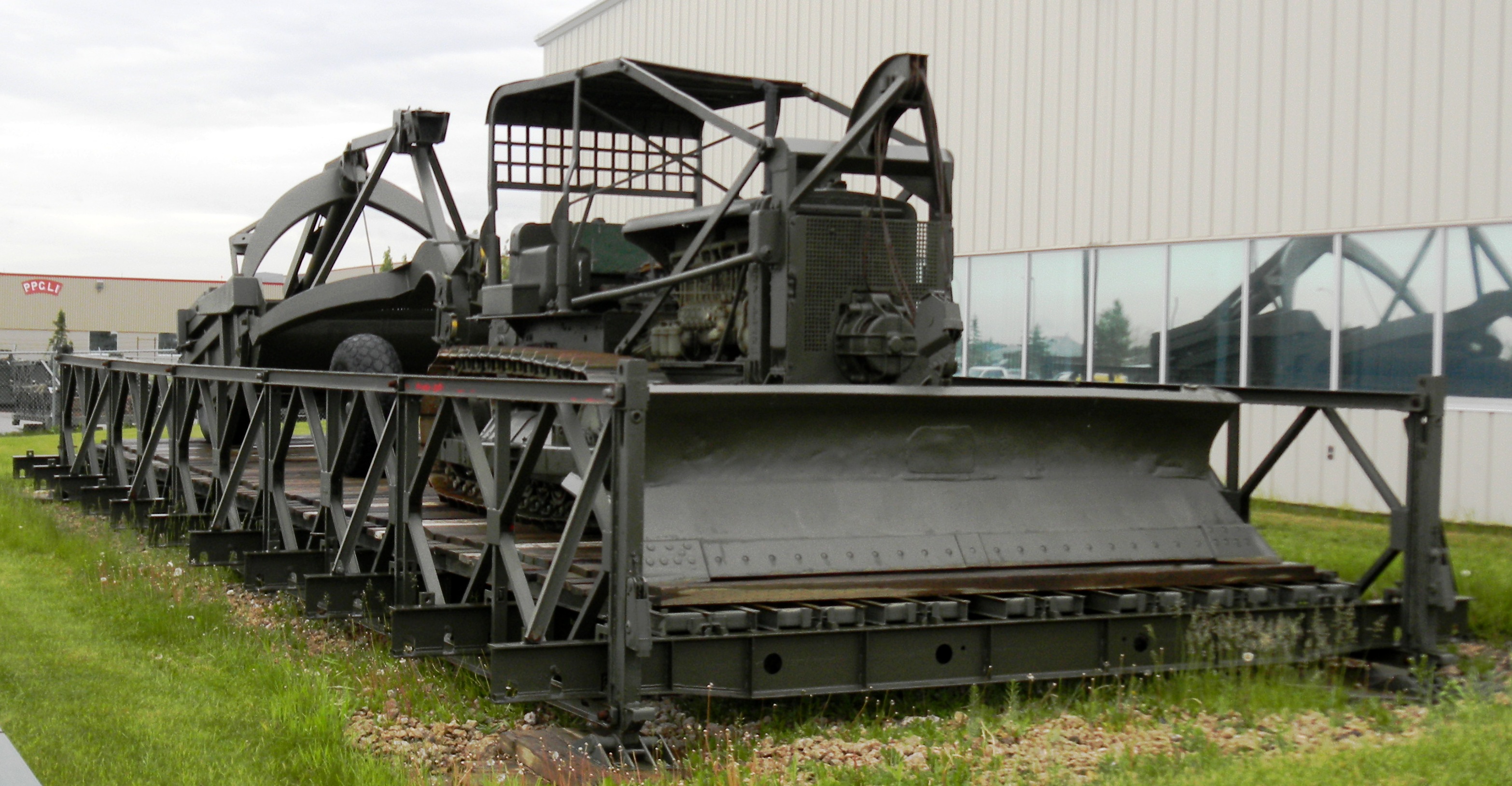 Caterpillar D7 Bulldozer mounted on a section of Bailey Bridge, RCE Bldg.