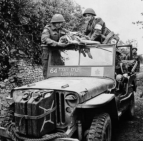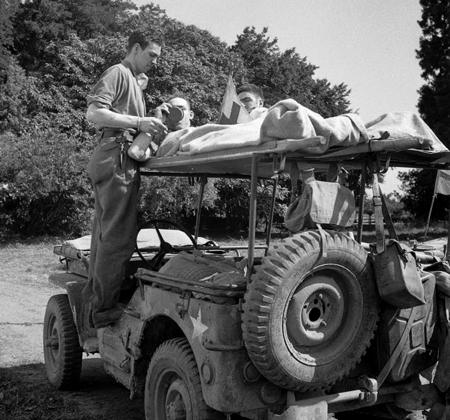 An ambulance jeep of the Royal Canadian Army Medical Corps (RCAMC), Vaucelles, France, 20 July 1944.