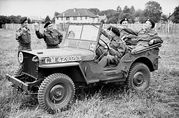 Troopers of the Three Rivers Regiment in a jeep in England, 22 July 1942.