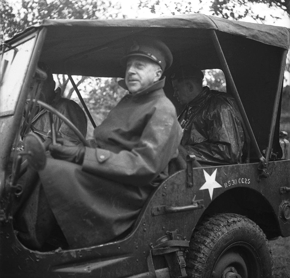 General H.D.G. Crerar driving a jeep, ca 1945.