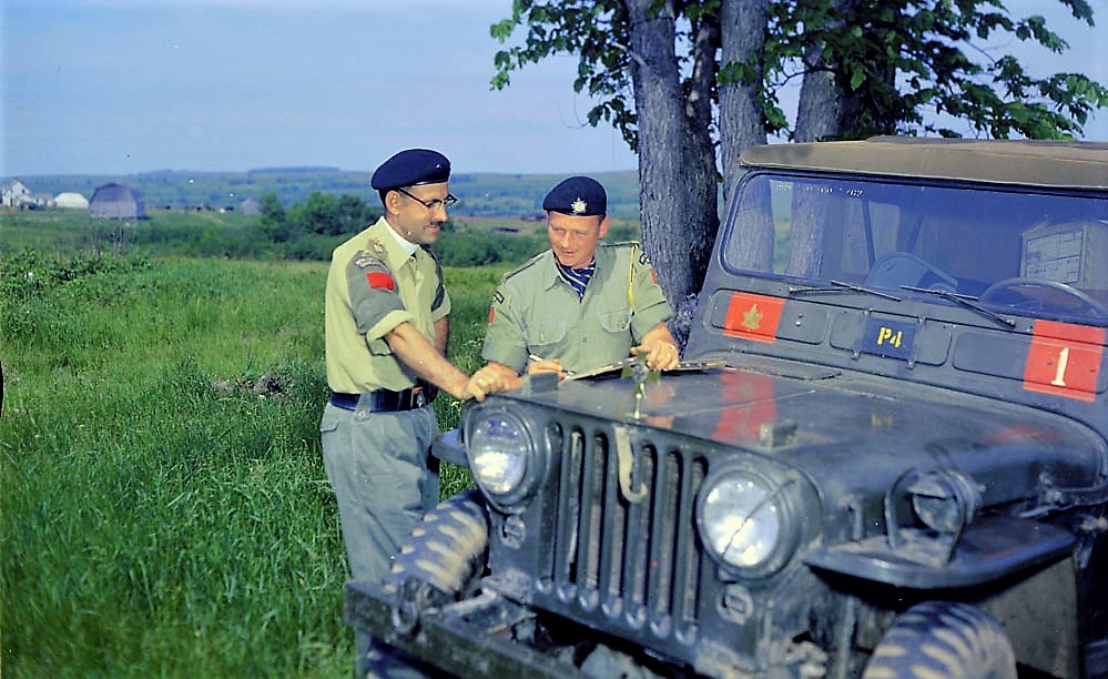 Chaplains in the Field with a Ford M38 jeep, Camp Gagetown, sometime before 1965.