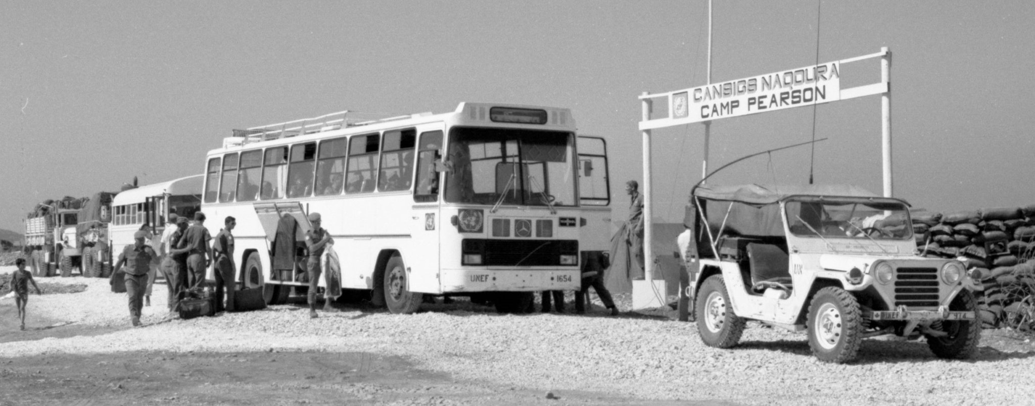 UNIFIL – United Nations Interim Force in Lebanon, convoy of trucks and buses, with an M-151 Truck, Utility, 1.25-ton, 4 X 4 Jeep (G838), 1 Oct 1978.