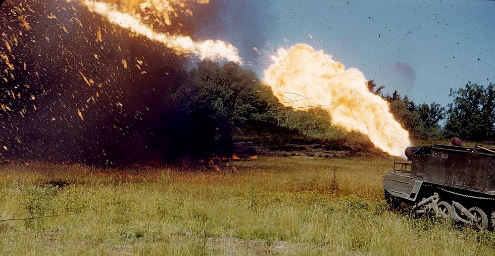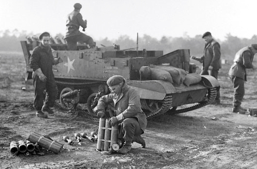 Wasp flamethrower crews, Queen’s Own Rifles of Canada, Vaucelles, France, 29 Jul 1944. (Library and Archives Canada Photo, MIKAN No. 3205139)