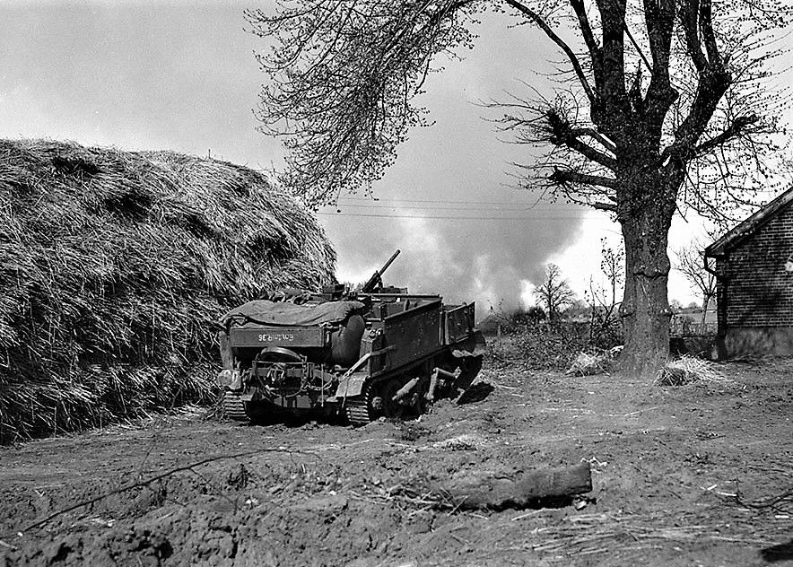 A Universal Carrier of The Cameron Highlanders of Ottawa (M.G.) passing through Holten, Netherlands, 9 April 1945.