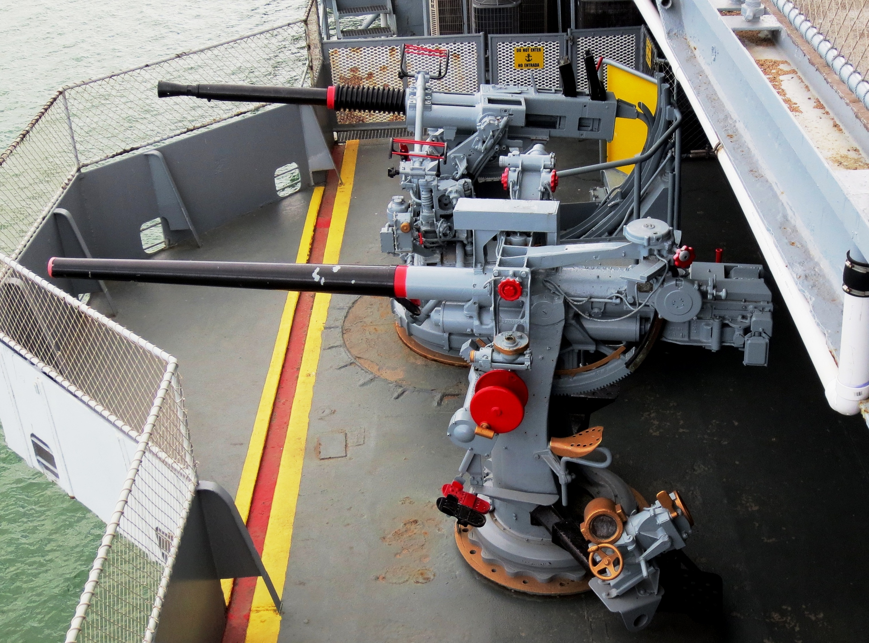 Bofors 40-mm anti-aircraft gun and 3-inch 50 cal anti-aircraft gun.